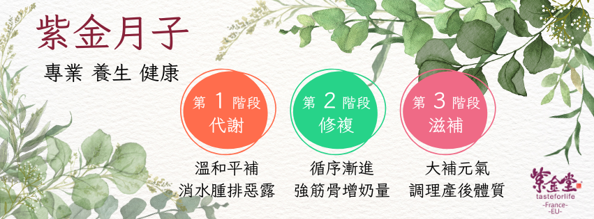 紫金堂秉承中醫觀點,集結超過38萬個客戶的服務經驗,挑選出12道適合各種體質的月子湯方,依循「代謝、修復、滋補」漸進式調養原則,規劃出坐月子三階段藥膳,協助產後婦女完善調理。